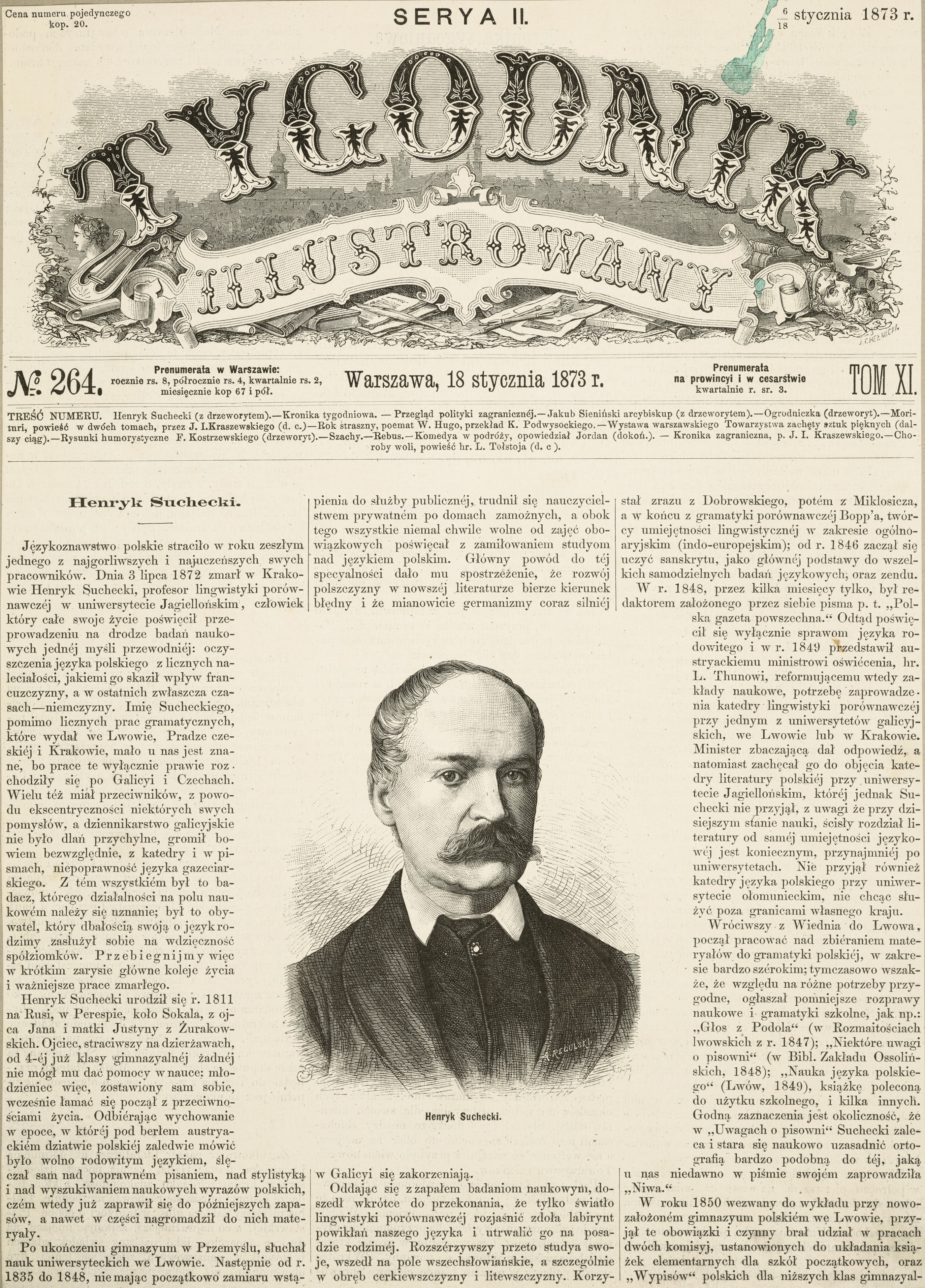 , Portret Henryka Sucheckiego na stronie tytułowej czasopisma., [w:] Polski słownik biograficzny, t. ,