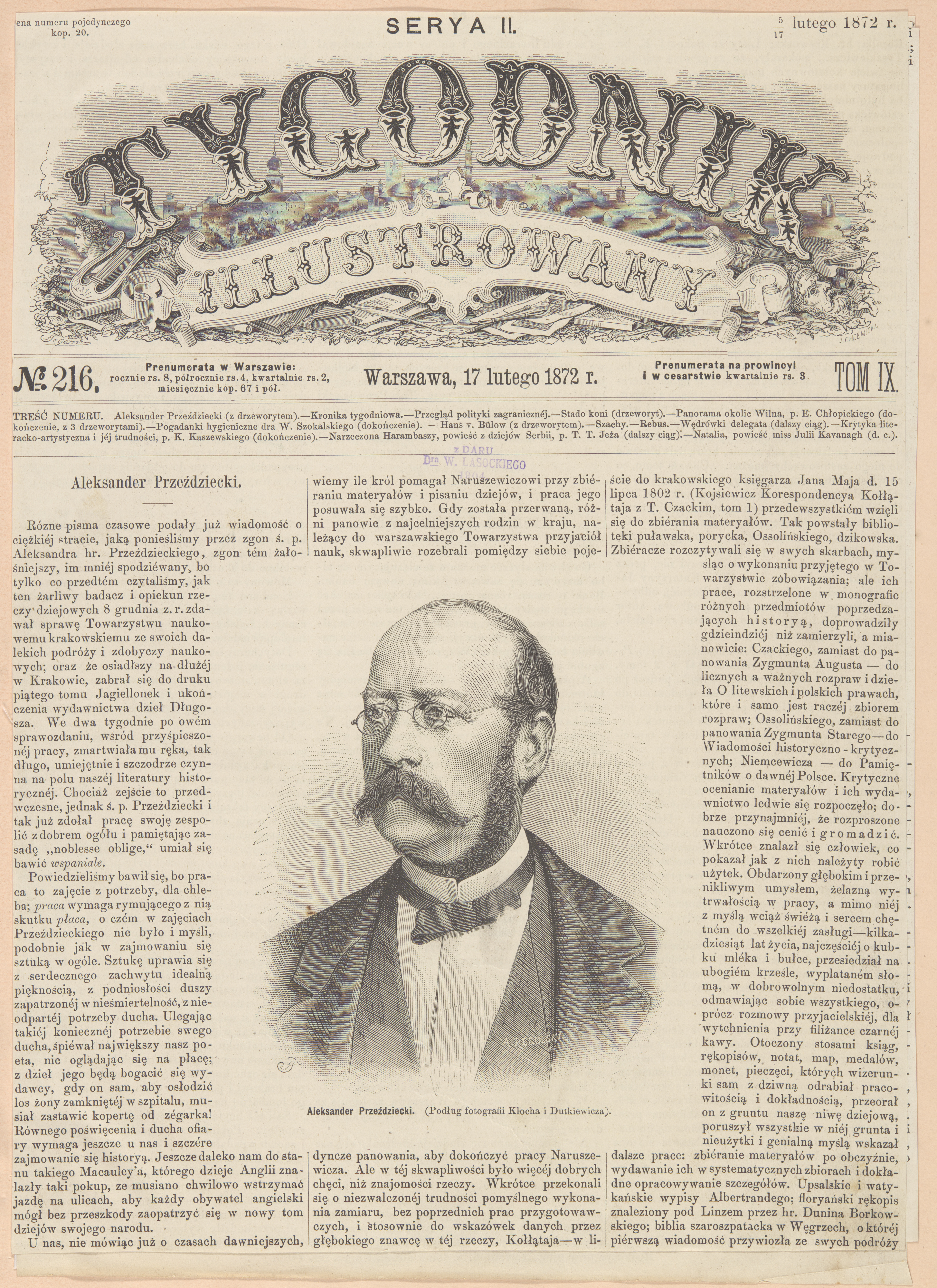 , Strona tytułowa czasopisma z portretem Aleksandra Przezdzieckiego., [w:] Polski słownik biograficzny, t. ,